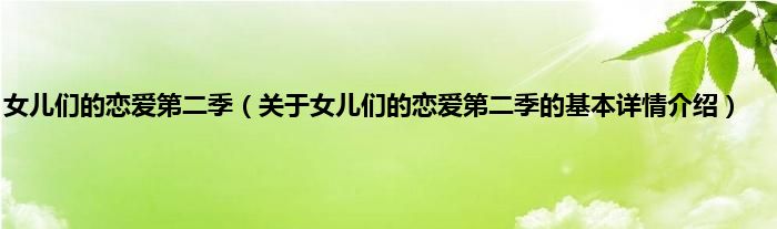 本文关于女儿们的恋爱第二季的基本详情介绍就讲解完毕,希望对大家有所帮助。