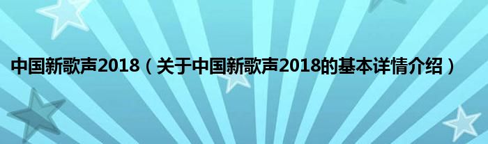 本文关于中国新歌声2018的基本详情介绍就讲解完毕,希望对大家有所帮助。