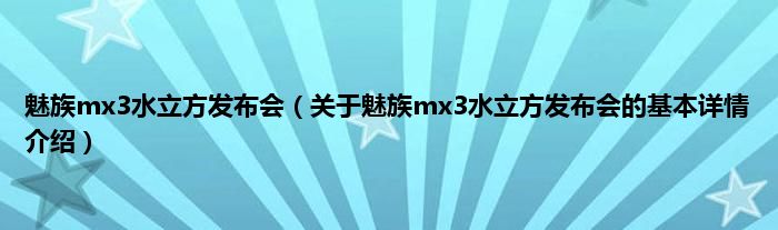 本文关于魅族mx3水立方发布会的基本详情介绍就讲解完毕,希望对大家有所帮助。