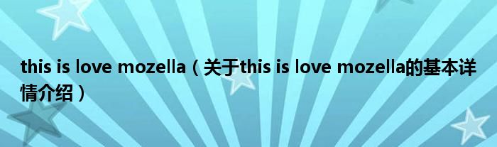 本文关于this is love mozella的基本详情介绍就讲解完毕,希望对大家有所帮助。