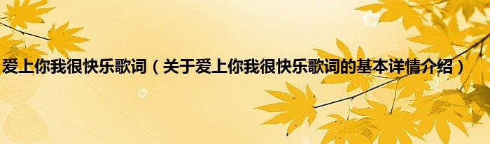 本文关于爱上你我很快乐歌词的基本详情介绍就讲解完毕,希望对大家有所帮助。