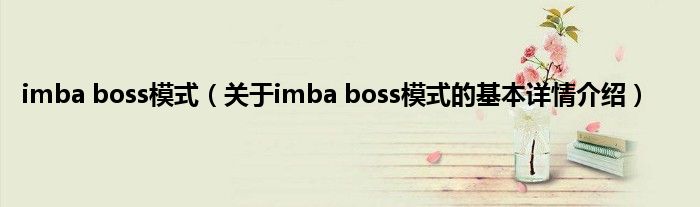 本文关于imba boss模式的基本详情介绍就讲解完毕,希望对大家有所帮助。