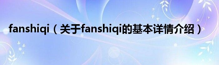 本文关于fanshiqi的基本详情介绍就讲解完毕,希望对大家有所帮助。