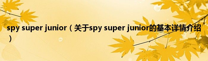 本文关于spy super junior的基本详情介绍就讲解完毕,希望对大家有所帮助。
