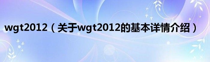 本文关于wgt2012的基本详情介绍就讲解完毕,希望对大家有所帮助。