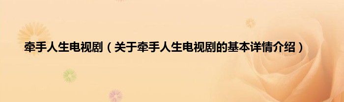 本文关于牵手人生电视剧的基本详情介绍就讲解完毕,希望对大家有所帮助。