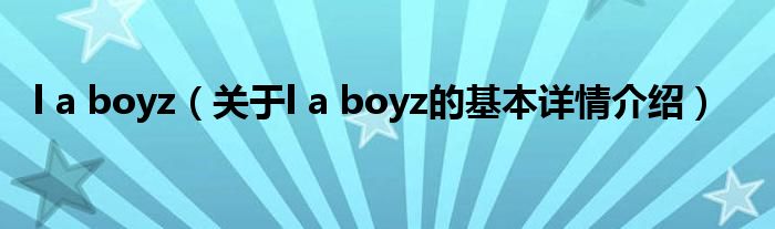 本文关于l a boyz的基本详情介绍就讲解完毕,希望对大家有所帮助。