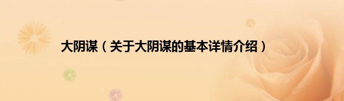 本文关于大阴谋的基本详情介绍就讲解完毕,希望对大家有所帮助。