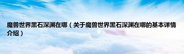 本文关于魔兽世界黑石深渊在哪的基本详情介绍就讲解完毕,希望对大家有所帮助。