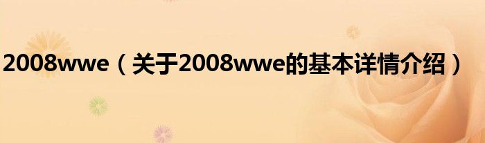 本文关于2008wwe的基本详情介绍就讲解完毕,希望对大家有所帮助。
