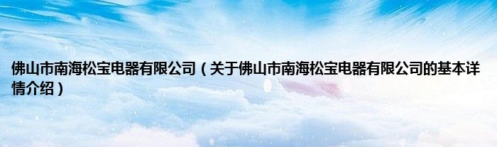 本文关于佛山市南海松宝电器有限公司的基本详情介绍就讲解完毕,希望对大家有所帮助。