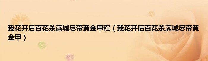 大家好,小问来为大家解答以上问题。我花开后百花杀满城尽带黄金甲程,我花开后百花杀满城尽带黄金甲这个很多人还不知道,现在让我们一起来看看吧!