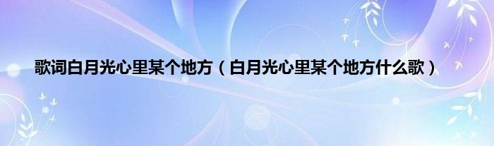 以上就是【歌词白月光心里某个地方,白月光心里某个地方什么歌】相关内容。
