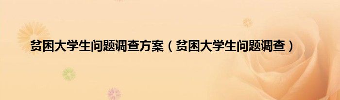 大家好,小问来为大家解答以上问题。贫困大学生问题调查方案,贫困大学生问题调查这个很多人还不知道,现在让我们一起来看看吧!