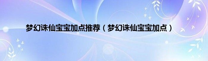 以上就是【梦幻诛仙宝宝加点推荐,梦幻诛仙宝宝加点】相关内容。