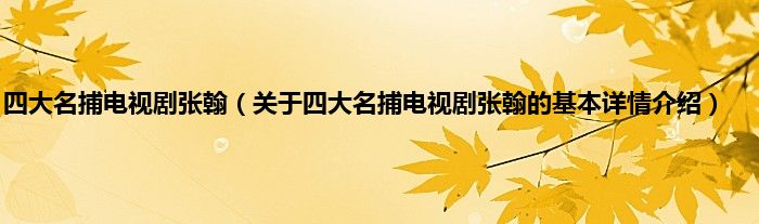 本文关于四大名捕电视剧张翰的基本详情介绍就讲解完毕,希望对大家有所帮助。