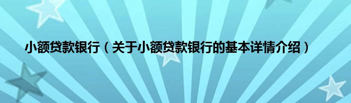 本文关于小额贷款银行的基本详情介绍就讲解完毕,希望对大家有所帮助。