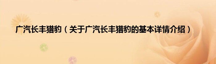 本文关于广汽长丰猎豹的基本详情介绍就讲解完毕,希望对大家有所帮助。