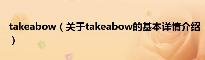 大家好我是小蝌蚪,takeabow,关于takeabow的基本详情介绍很多人还不知道,那么现在让我们一起来看看吧!