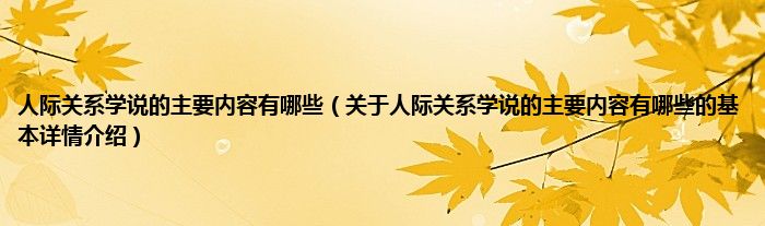 本文关于人际关系学说的主要内容有哪些的基本详情介绍就讲解完毕,希望对大家有所帮助。