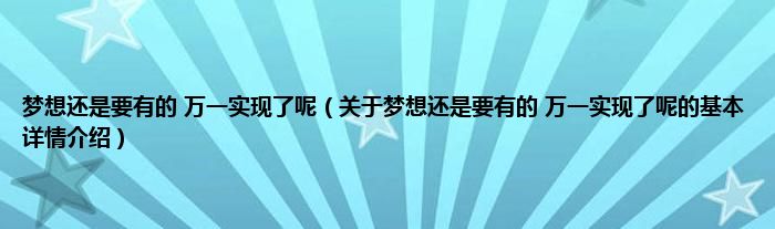 本文关于梦想还是要有的 万一实现了呢的基本详情介绍就讲解完毕,希望对大家有所帮助。