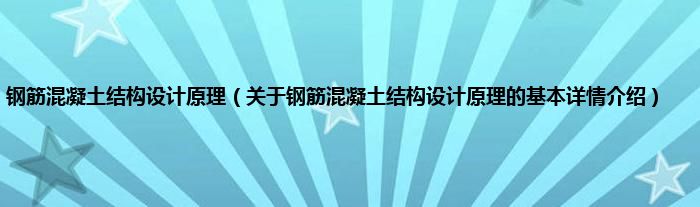 本文关于钢筋混凝土结构设计原理的基本详情介绍就讲解完毕,希望对大家有所帮助。