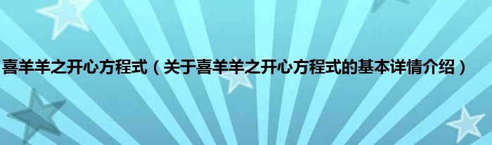 本文关于喜羊羊之开心方程式的基本详情介绍就讲解完毕,希望对大家有所帮助。