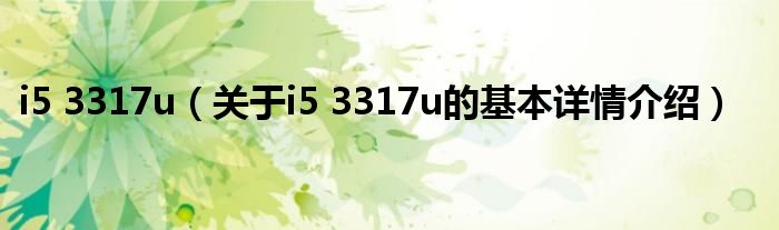 本文关于i5 3317u的基本详情介绍就讲解完毕,希望对大家有所帮助。