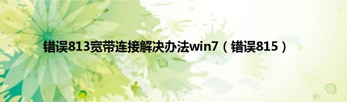 以上就是【错误813宽带连接解决办法win7,错误815】相关内容。