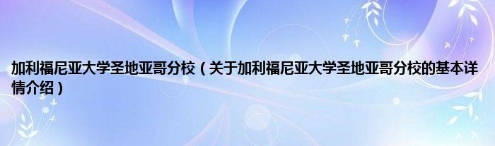 本文关于加利福尼亚大学圣地亚哥分校的基本详情介绍就讲解完毕,希望对大家有所帮助。