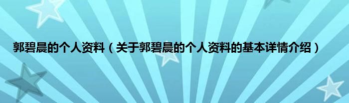 本文关于郭碧晨的个人资料的基本详情介绍就讲解完毕,希望对大家有所帮助。