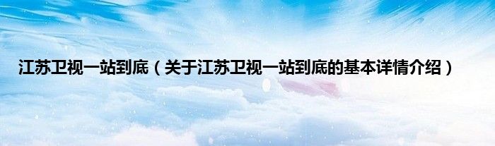 本文关于江苏卫视一站到底的基本详情介绍就讲解完毕,希望对大家有所帮助。