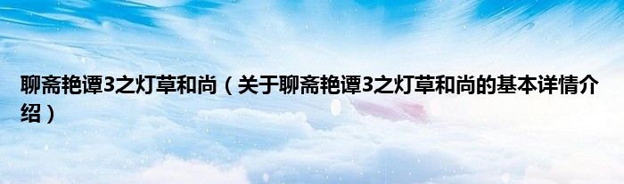 聊斋艳谭3之灯草和尚(关于聊斋艳谭3之灯草和尚的基本详情介绍)