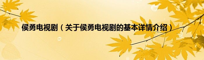 本文关于侯勇电视剧的基本详情介绍就讲解完毕,希望对大家有所帮助。