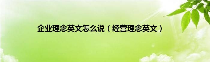 以上就是【企业理念英文怎么说,经营理念英文】相关内容。