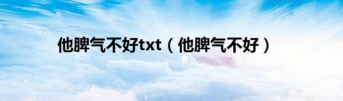 大家好,小问来为大家解答以上问题。他脾气不好txt,他脾气不好这个很多人还不知道,现在让我们一起来看看吧!