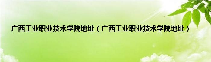 以上就是【广西工业职业技术学院地址,广西工业职业技术学院地址】相关内容。
