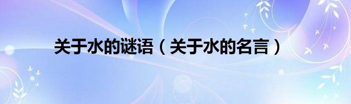 大家好,小问来为大家解答以上问题。关于水的谜语,关于水的名言这个很多人还不知道,现在让我们一起来看看吧!