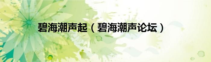 大家好,小问来为大家解答以上问题。碧海潮声起,碧海潮声论坛这个很多人还不知道,现在让我们一起来看看吧!