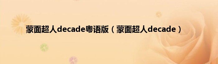 大家好,小问来为大家解答以上问题。蒙面超人decade粤语版,蒙面超人decade这个很多人还不知道,现在让我们一起来看看吧!