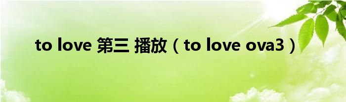 大家好,小问来为大家解答以上问题。to love 第三 播放,to love ova3这个很多人还不知道,现在让我们一起来看看吧!
