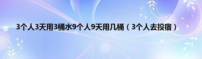 大家好,小问来为大家解答以上问题。3个人3天用3桶水9个人9天用几桶,3个人去投宿这个很多人还不知道,现在让我们一起来看看吧!