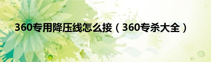 以上就是【360专用降压线怎么接,360专杀大全】相关内容。