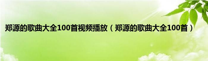 大家好,小问来为大家解答以上问题。郑源的歌曲大全100首视频播放,郑源的歌曲大全100首这个很多人还不知道,现在让我们一起来看看吧!