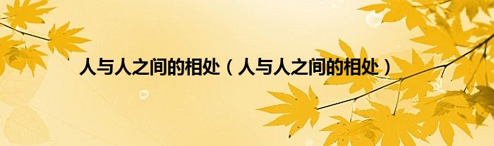 以上就是【人与人之间的相处,人与人之间的相处】相关内容。