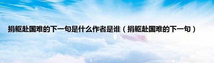 大家好,小问来为大家解答以上问题。捐躯赴国难的下一句是什么作者是谁,捐躯赴国难的下一句这个很多人还不知道,现在让我们一起来看看吧!
