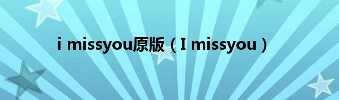 大家好,小问来为大家解答以上问题。i missyou原版,I missyou这个很多人还不知道,现在让我们一起来看看吧!