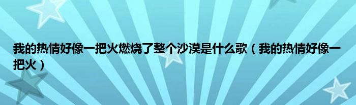 大家好,小问来为大家解答以上问题。我的热情好像一把火燃烧了整个沙漠是什么歌,我的热情好像一把火这个很多人还不知道,现在让我们一起来看看吧!