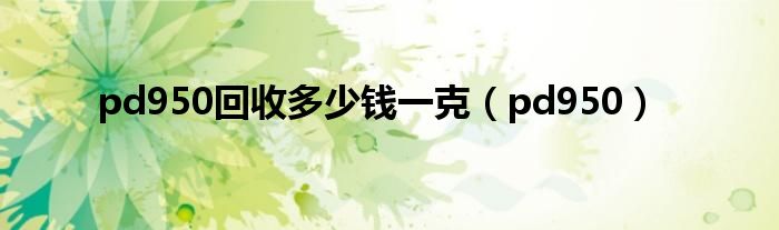 大家好,小问来为大家解答以上问题。pd950回收多少钱一克,pd950这个很多人还不知道,现在让我们一起来看看吧!
