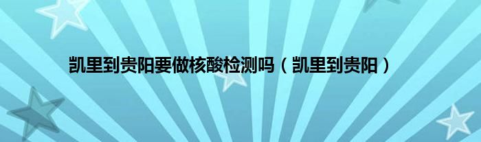 以上就是【凯里到贵阳要做核酸检测吗,凯里到贵阳】相关内容。